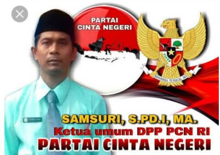 “Deklarasi Samsuri, S.Pd.I., M.A., Ketua Umum Partai Cinta Negeri, sebagai Calon Presiden Republik Indonesia Periode 2029–2034.”