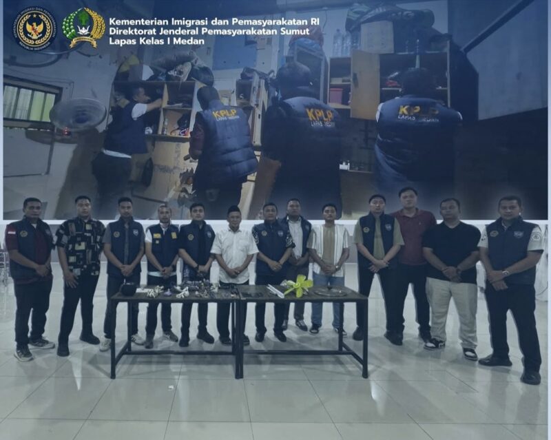 Medan – Dalam rangka mendukung Program Akselerasi Kementerian Imigrasi dan Pemasyarakatan, Lembaga Pemasyarakatan (Lapas) Kelas I Medan melaksanakan razia rutin dan deteksi dini keamanan serta ketertiban dengan melakukan penyisiran blok hunian warga binaan, Jumat (16/1/2026) malam.